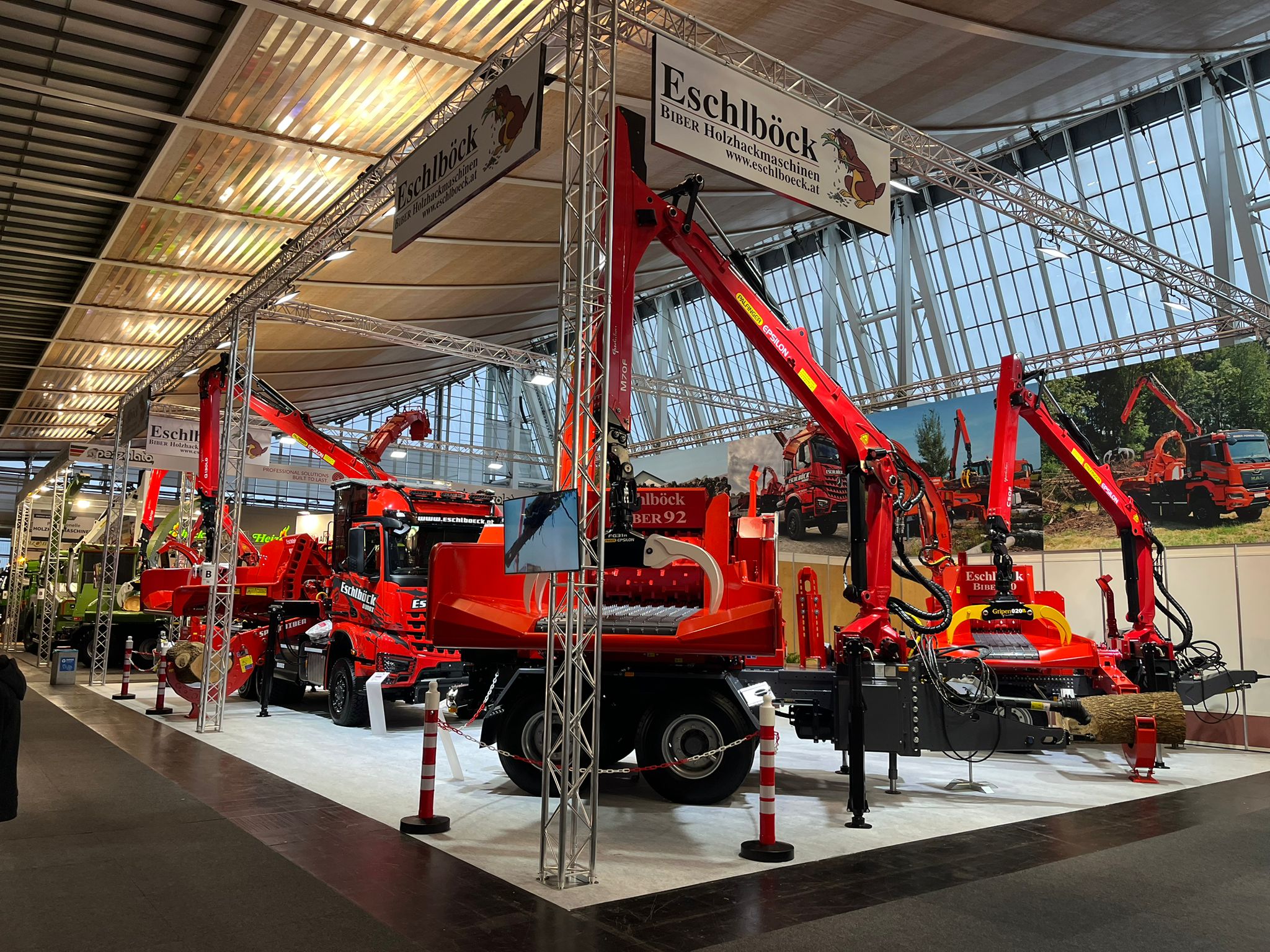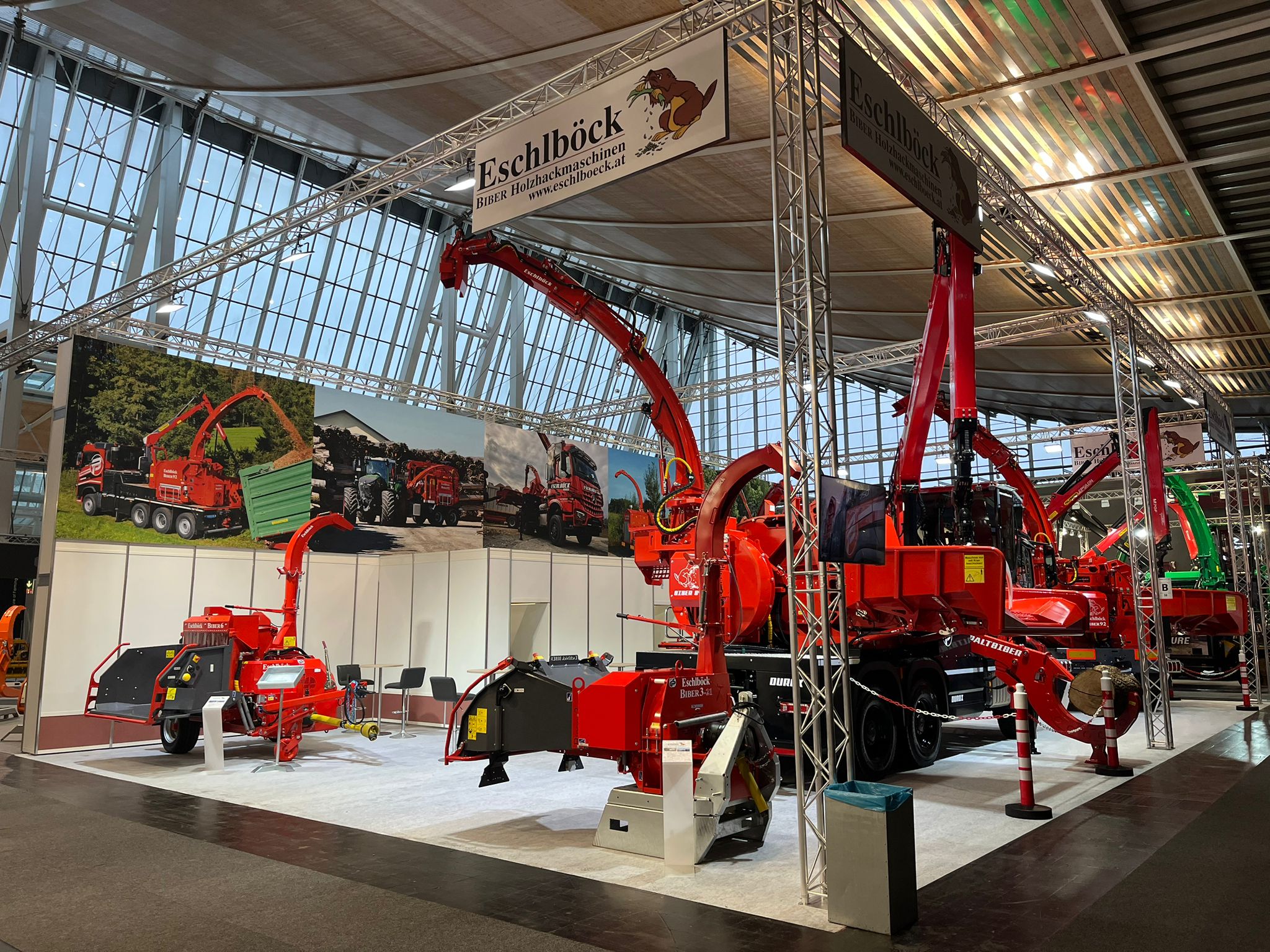 Für die professionelle Biomasseerzeugung mit dabei sind die kompakten Großhacker Biber 60 ZK und ein Biber 92 ZK mit Antrieb vom eigenen Schlepper.